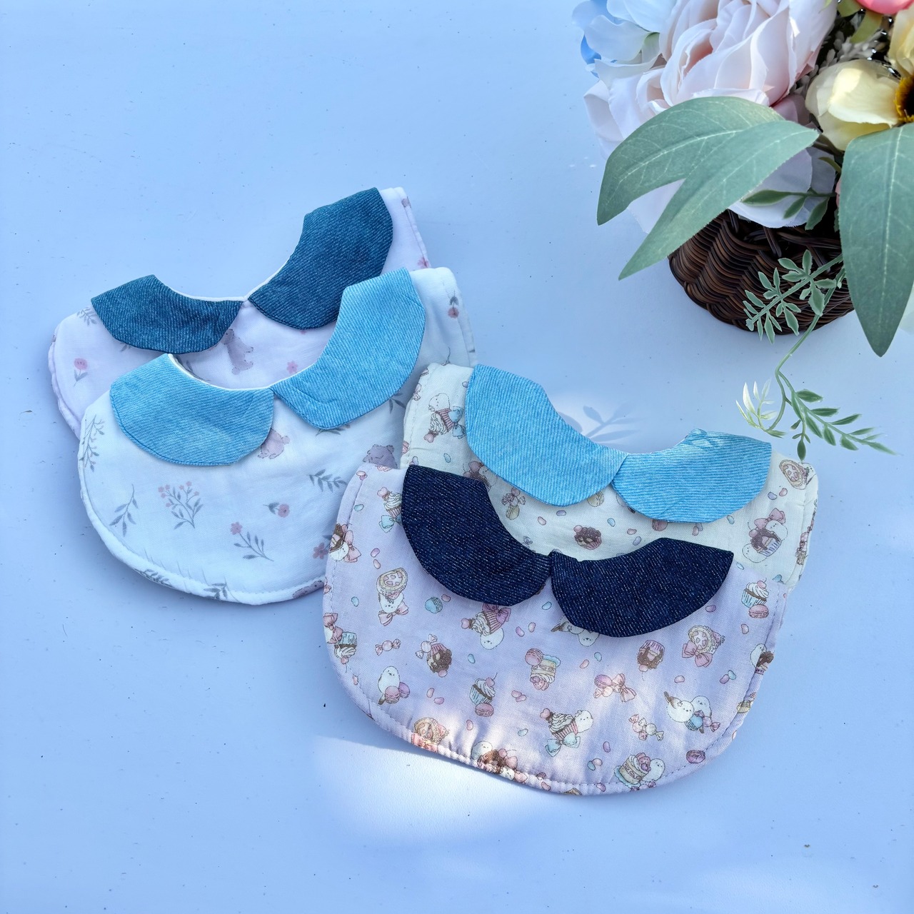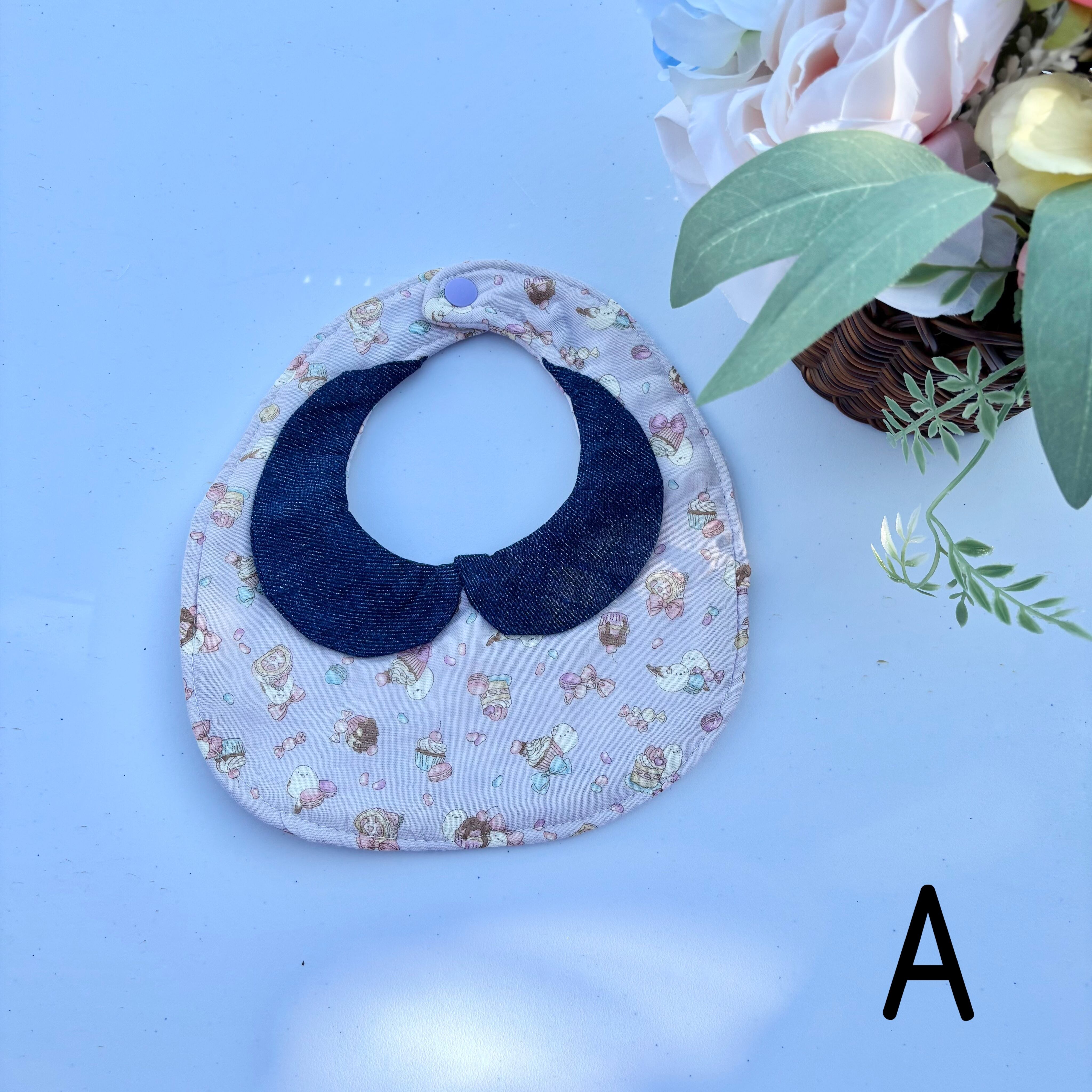 よだれが吸収されやすいよう、中地はタオル地となっています。(襟の部分は中地はありません)