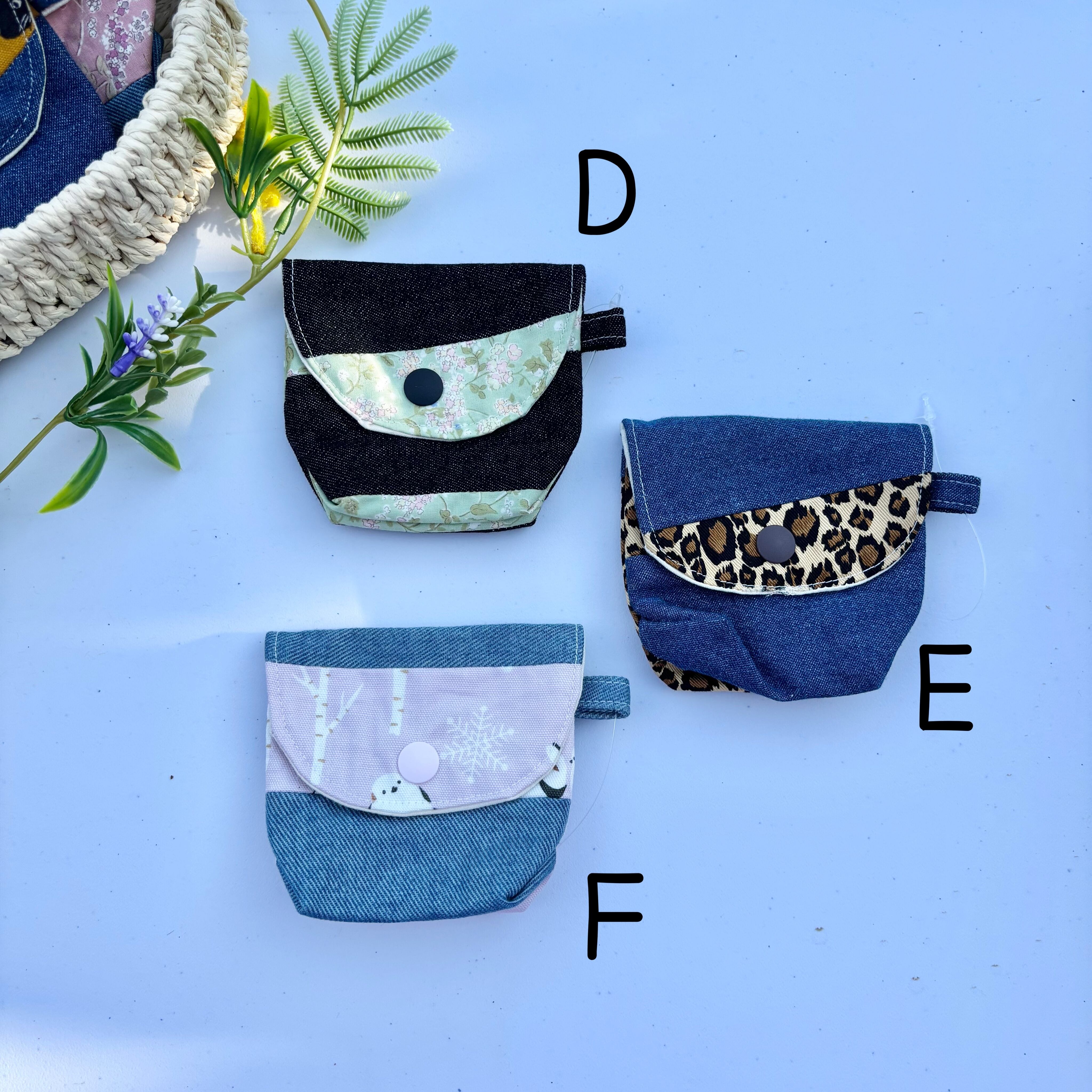外布にはやわらかな柄生地とデニム地を組み合わせ、