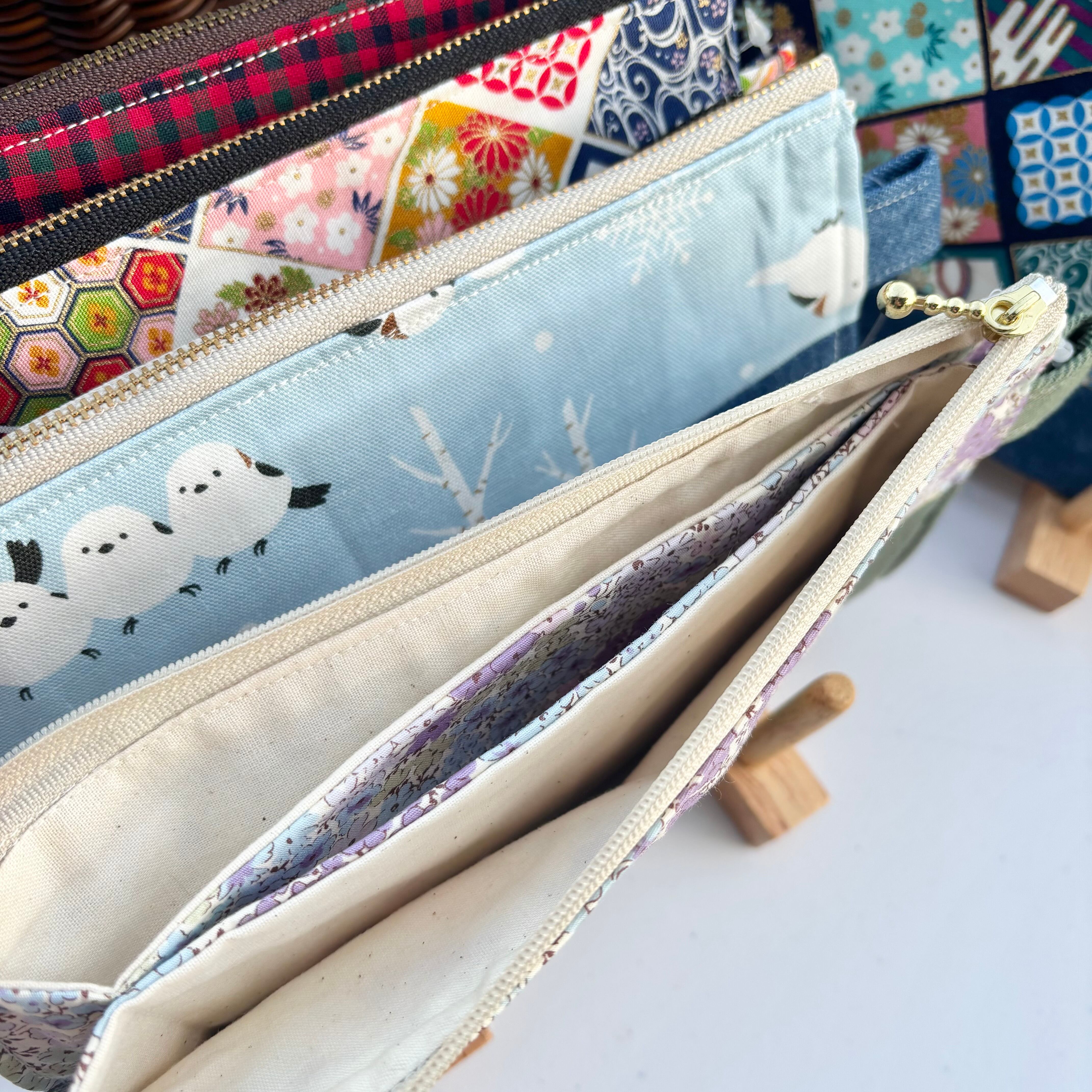 通帳が収まるサイズ感で、ペンケースや小物入れとしてもお使いいただけます。