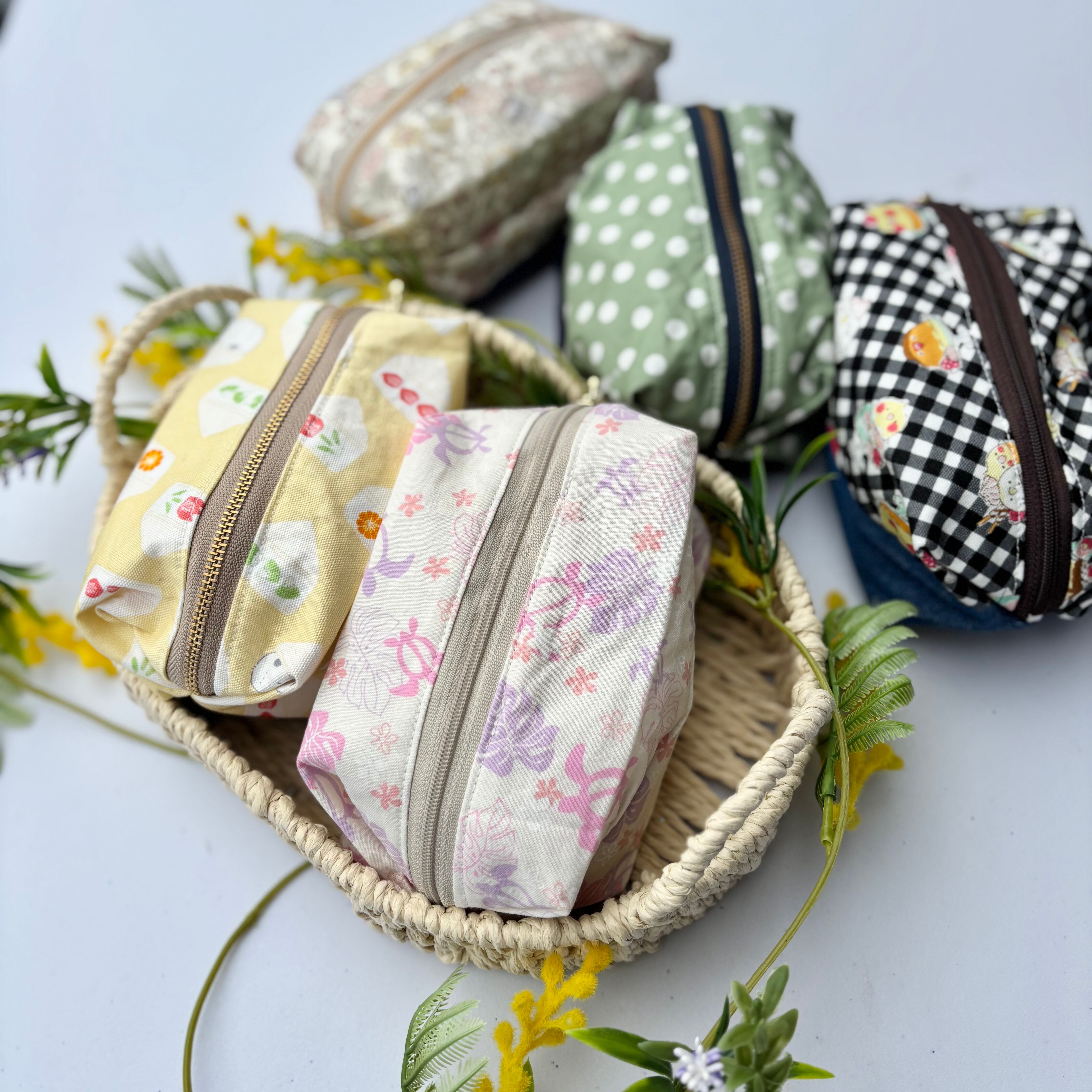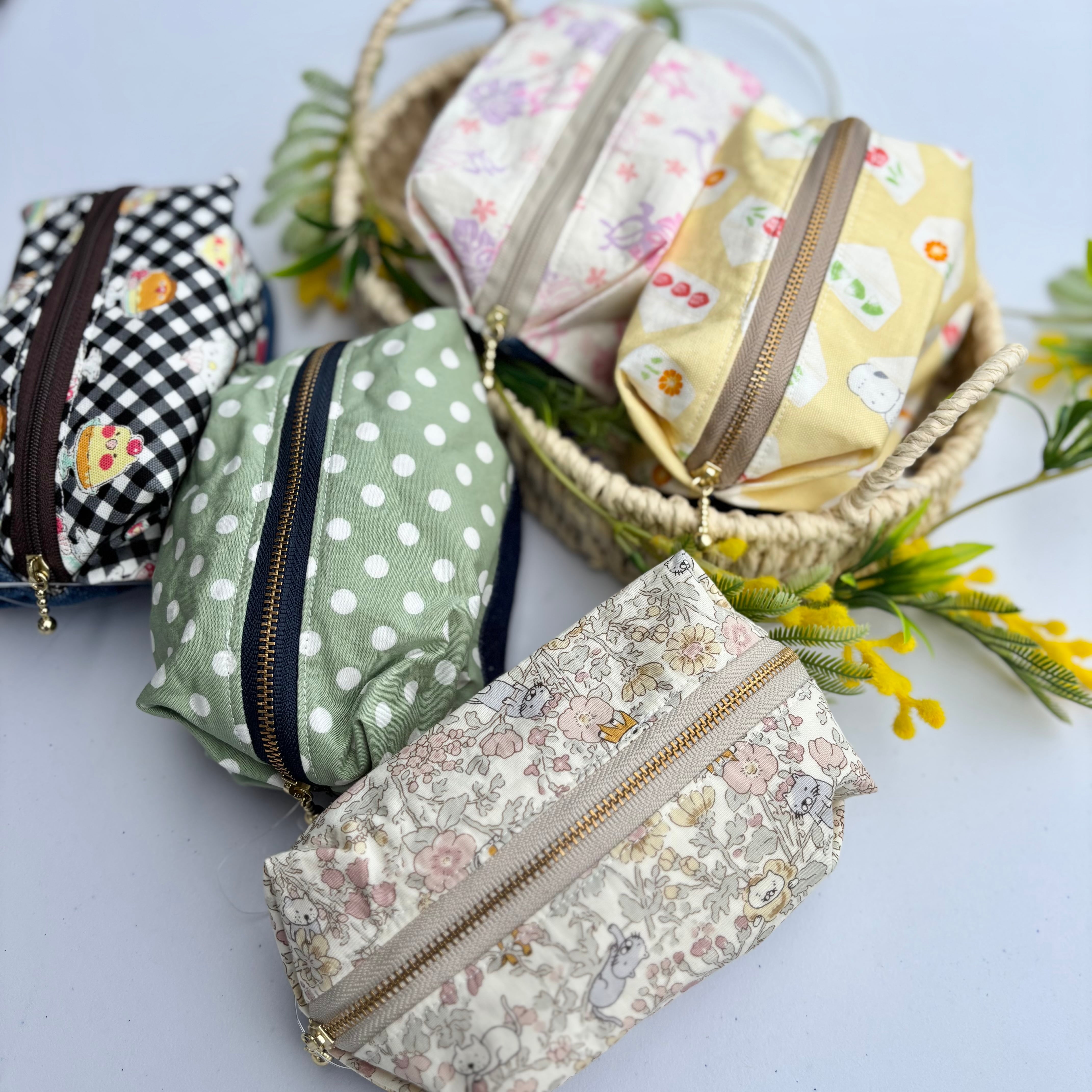 柄生地とデニムを組み合わせたデザインは、可愛さの中にほどよい落ち着きがあり、日常使いにも取り入れやすい仕上がりに。