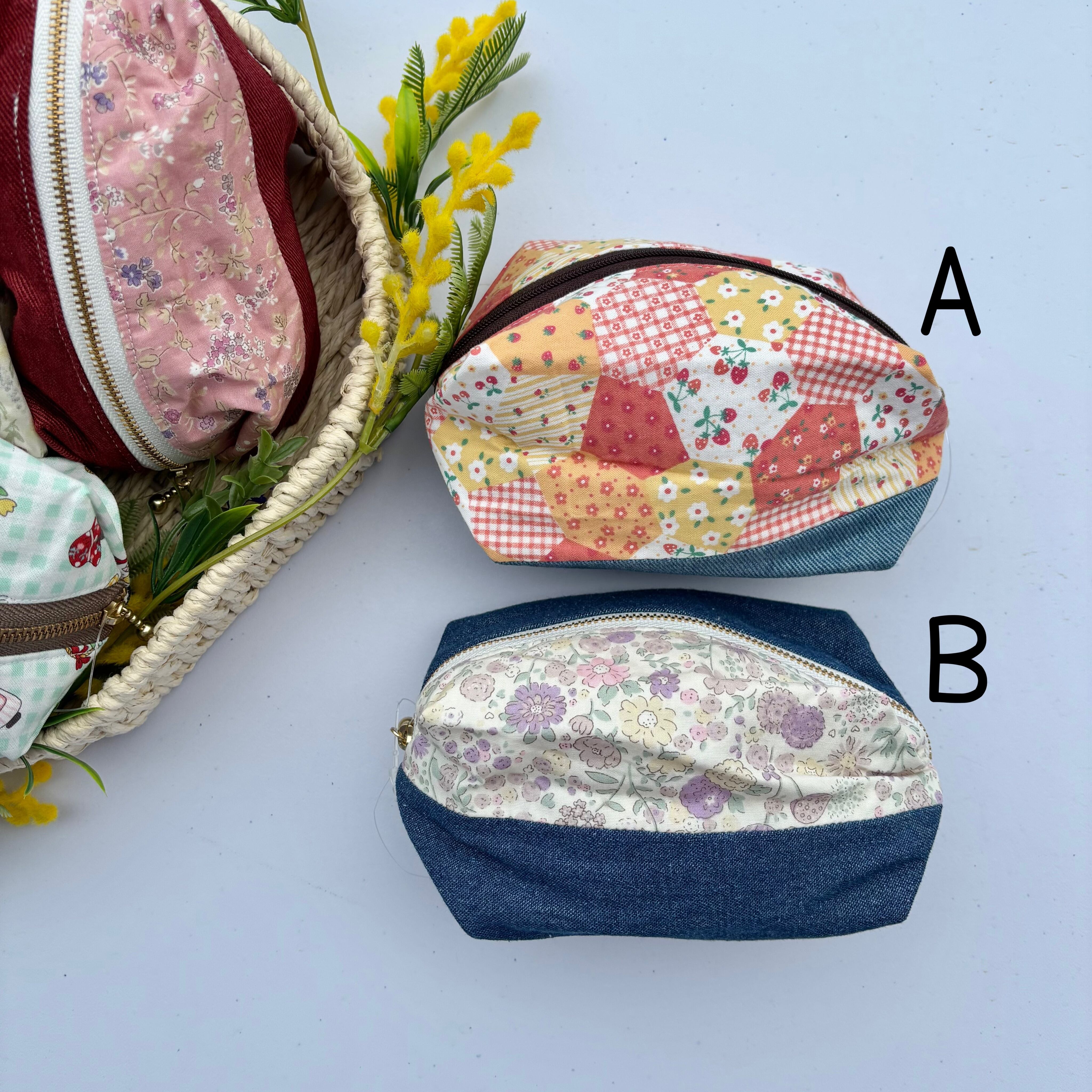 柄生地とデニムを組み合わせたデザインは、可愛さの中にほどよい落ち着きがあり、日常使いにも取り入れやすい仕上がりに。
