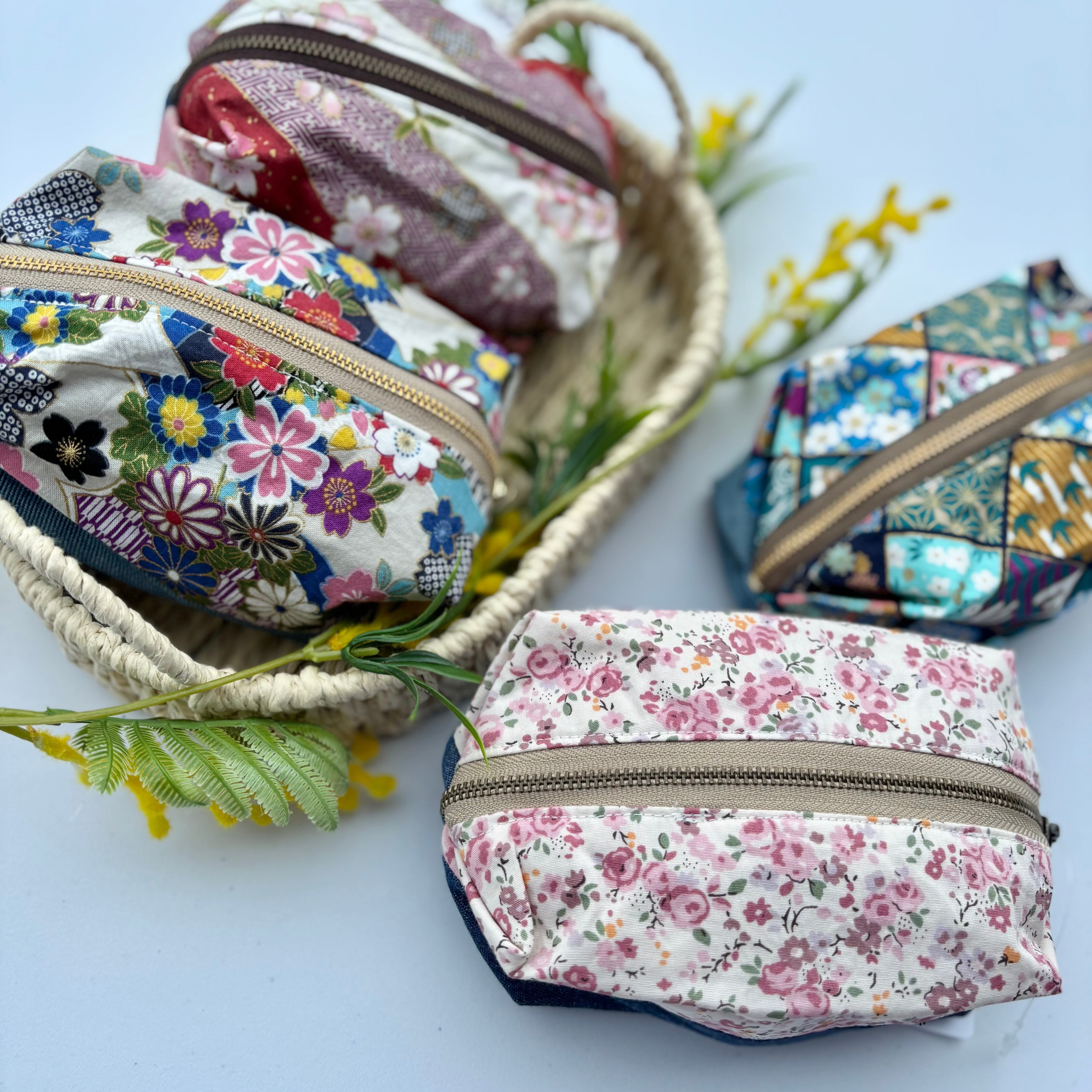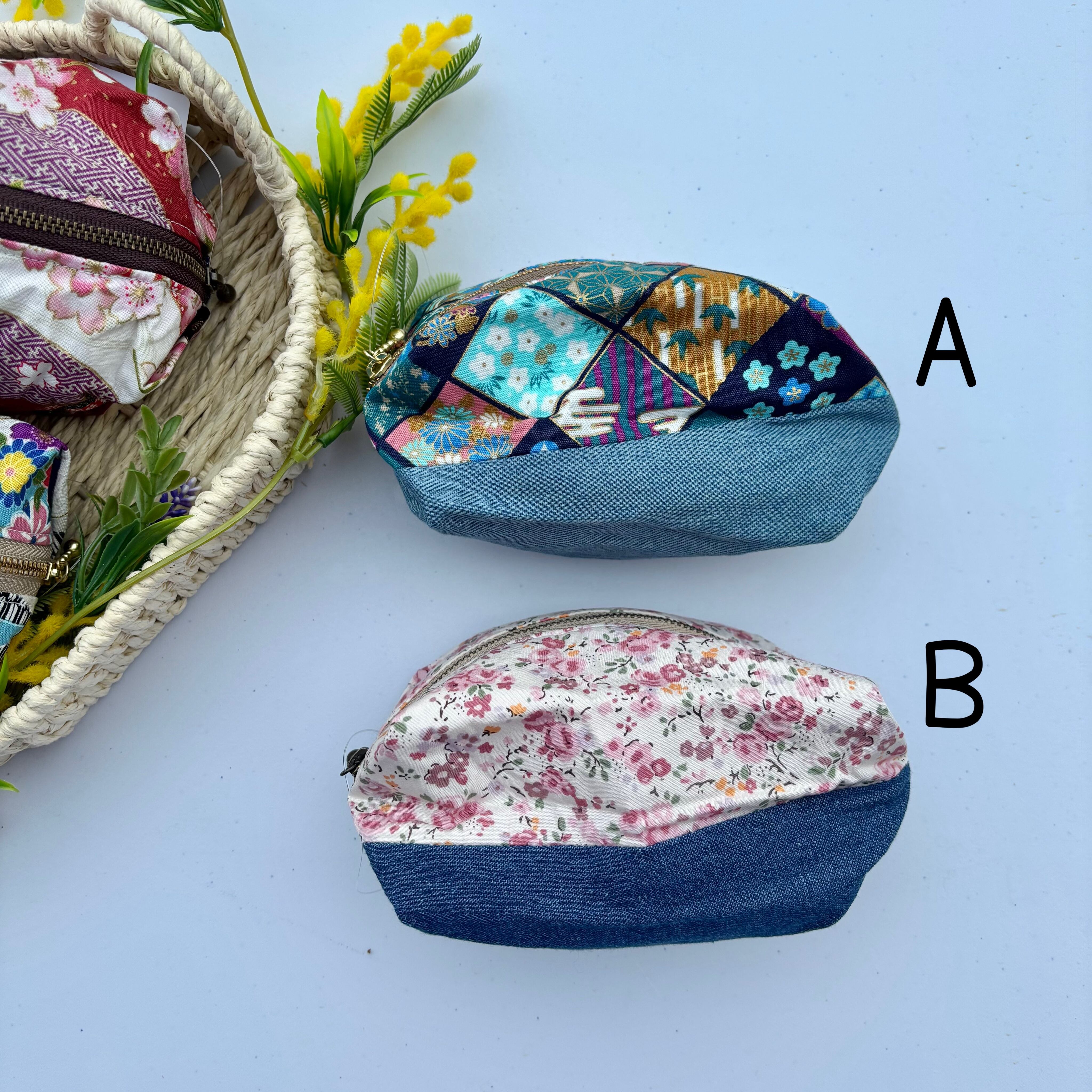 柄生地とデニムを組み合わせたデザインは、可愛さの中にほどよい落ち着きがあり、日常使いにも取り入れやすい仕上がりに。